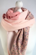 XXL Musselintuch rosa gemustert – Dreieckstuch, Wickelschal & Stola, 100% Baumwolle, 128x128 cm